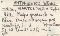 ANTONIEWICZ Włodzimierz WARTOŁOWSKA, Zofia. ; 1964 Mapa grodzisk w Polsce. Praca zbiorowa [...].