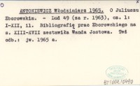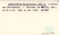 ANTONIEWICZ Włodzimierz 1965 a O Juliuszu Zborowski.