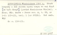 ANTONIEWICZ Włodzimierz 1966 c Skarb brązowy z III okresu epoki brązu we wsi Kryż [ma być: Krzyż] (powiat Kazimierza Wielka).