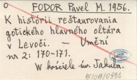 FODOR Pavel M. 1956 K histórii reątaurovania gotického hlavného oltára v Levoči.