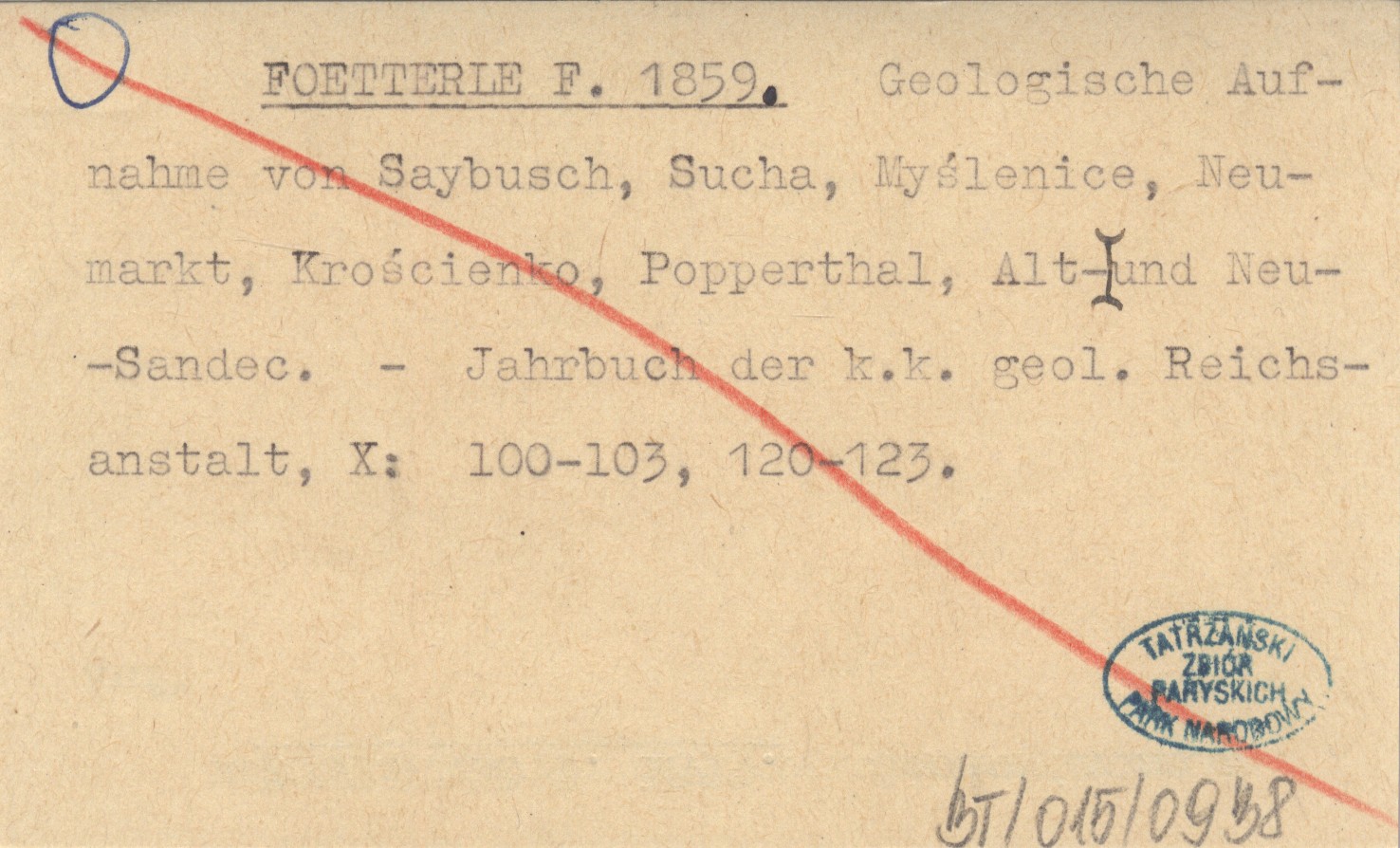 FOETTERLE F. 1859 Geologische Aufnahme von Saybusch, Sucha, Myślenice, Neumarkt, Krościenko, Popperthal, Alt- und Neu-Sandec.