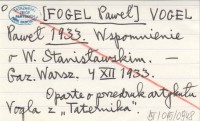 VOGEL Paweł [FOGEL Paweł] 1933 Wspomnienie o W. Stanisławskim.