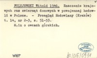FOLEJEWSKI Witold 1946 Znaczenie krajowych ras zwierząt domowych w powojennej hodowli w Polsce.