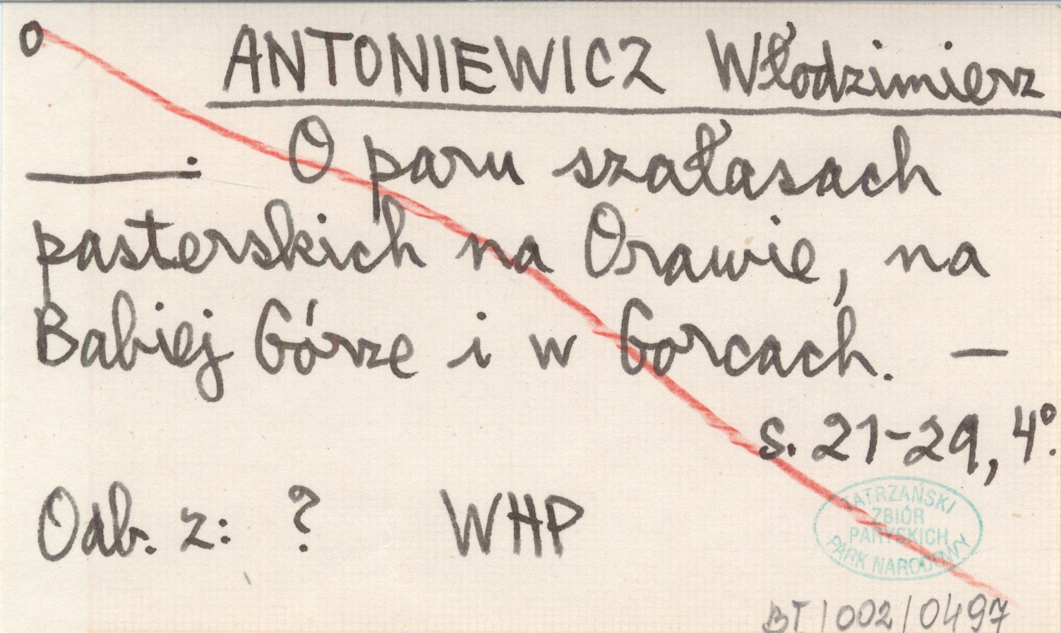 ANTONIEWICZ Włodzimierz O paru szałasach pasterskich na Orawie, na Babiej Górze i w Gorcach.