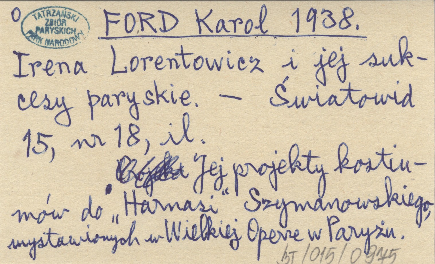 FORD Karol 1938 Irena Lorentowicz i jej sukcesy paryskie.