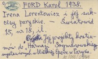 FORD Karol 1938 Irena Lorentowicz i jej sukcesy paryskie.