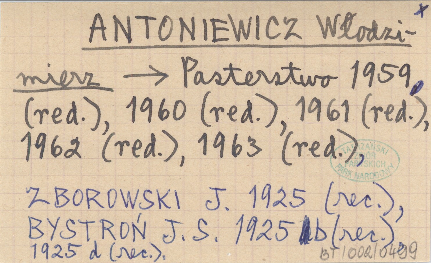 Pasterstwo 1959 (red.), 1960 (red.), 1961 (red.), 1962 (red.), 1963 (red.) ZBOROWSKI J. 1925 (rec.) BYSTROŃ J. S. 1925 b (rec.), 1925 d (rec.)