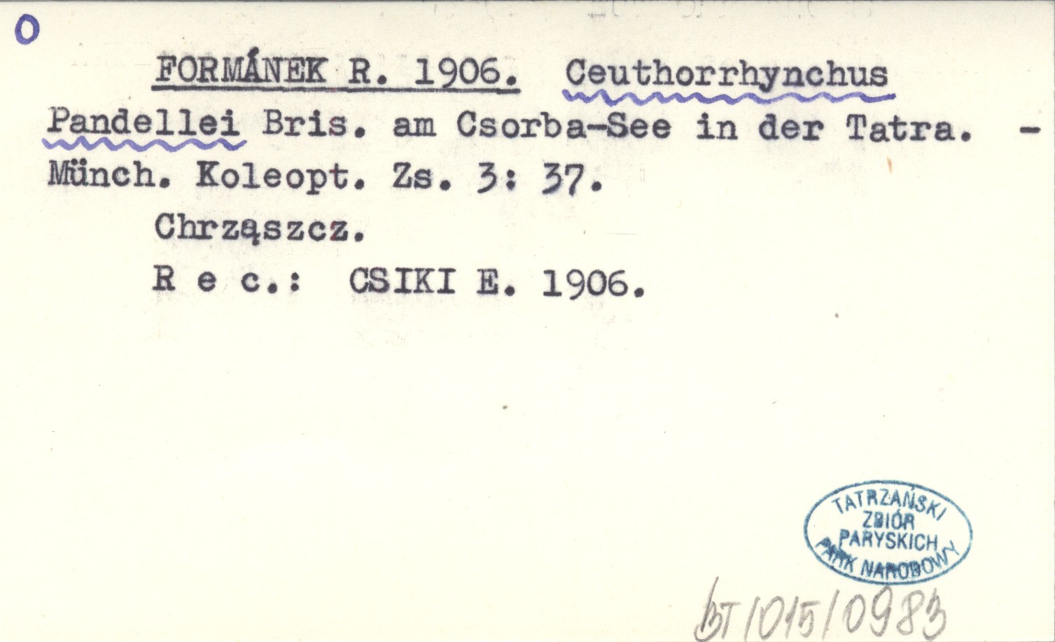 FORMÁNEK R. 1906 Ceuthorrhynchus Pandellei Bris. am Csorba-See in der Tatra.