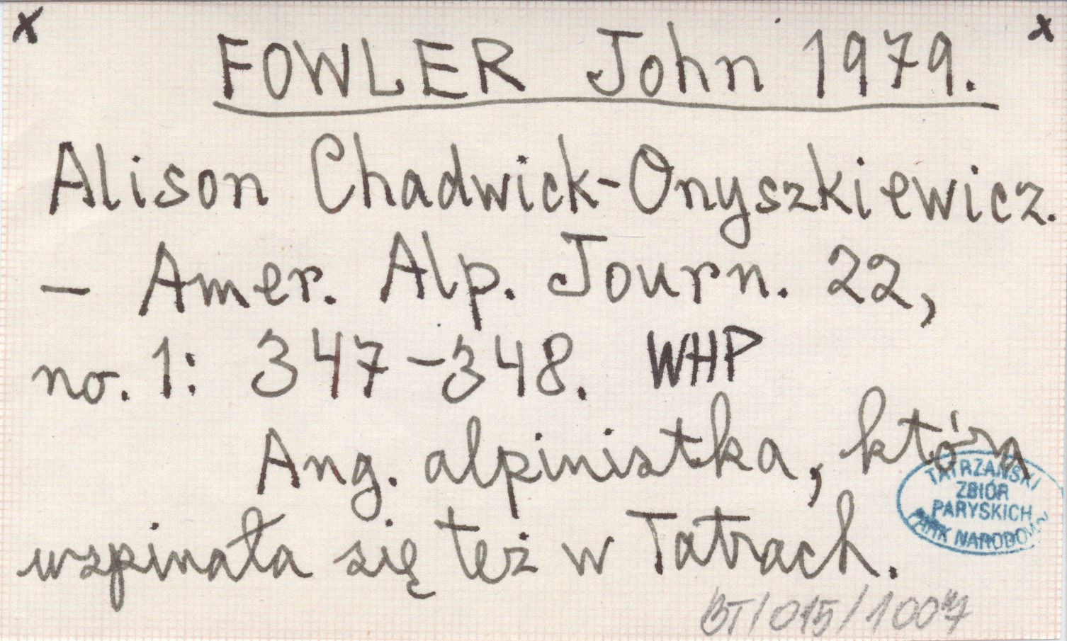 The American alpine journal, 22, nr 1: 347-348. Ang. alpinistka, która wspinała się też w Tatrach.
