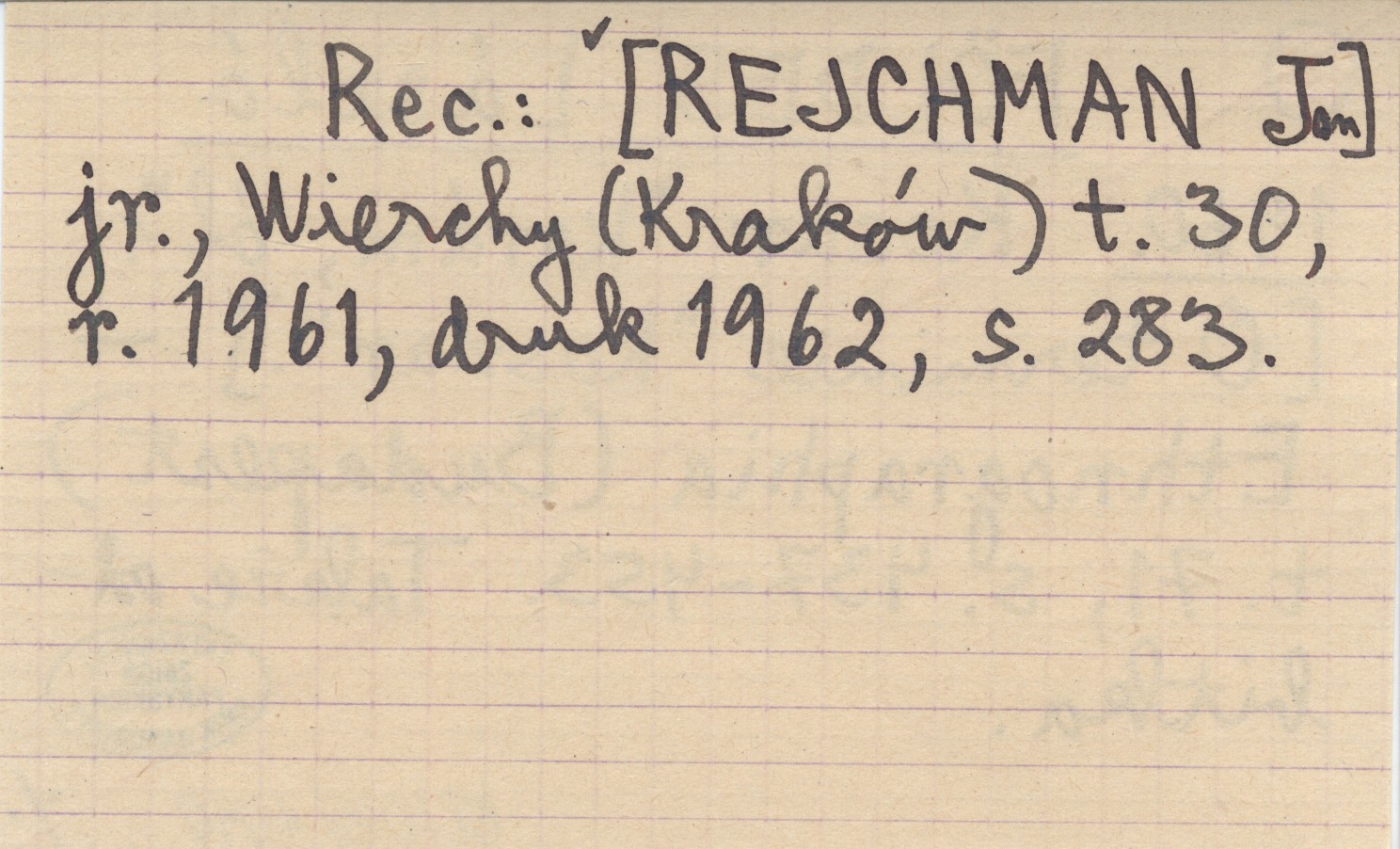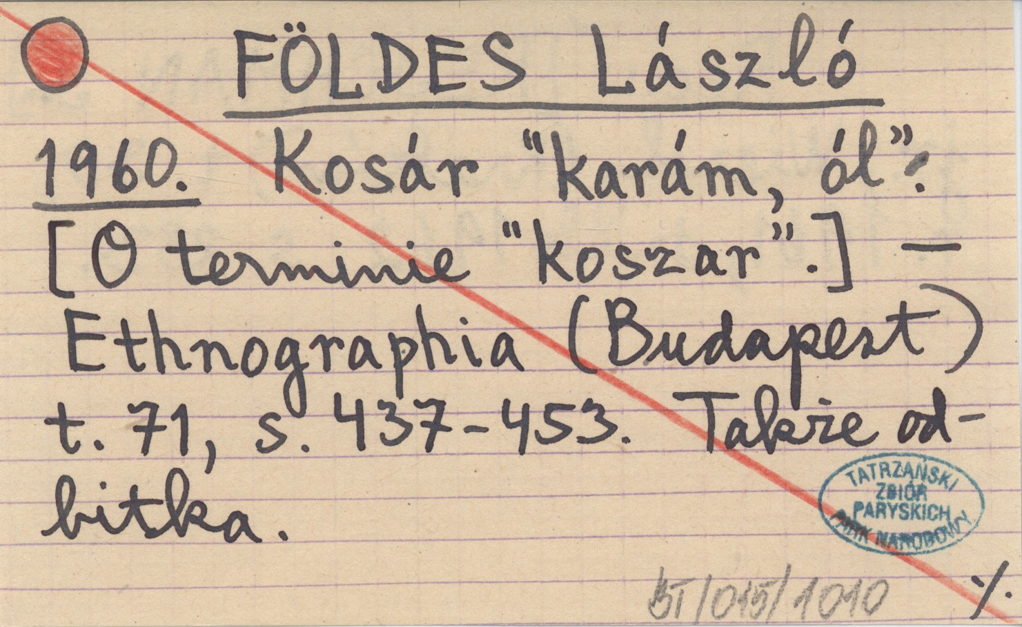 Ethnographia (Budapest) , T. 71: 437-453. Także odbitka. REC: [REJCHMAN Jan] jr., Wierchy (Kraków) t. 30, r. 1961, druk 1962, s. 283.