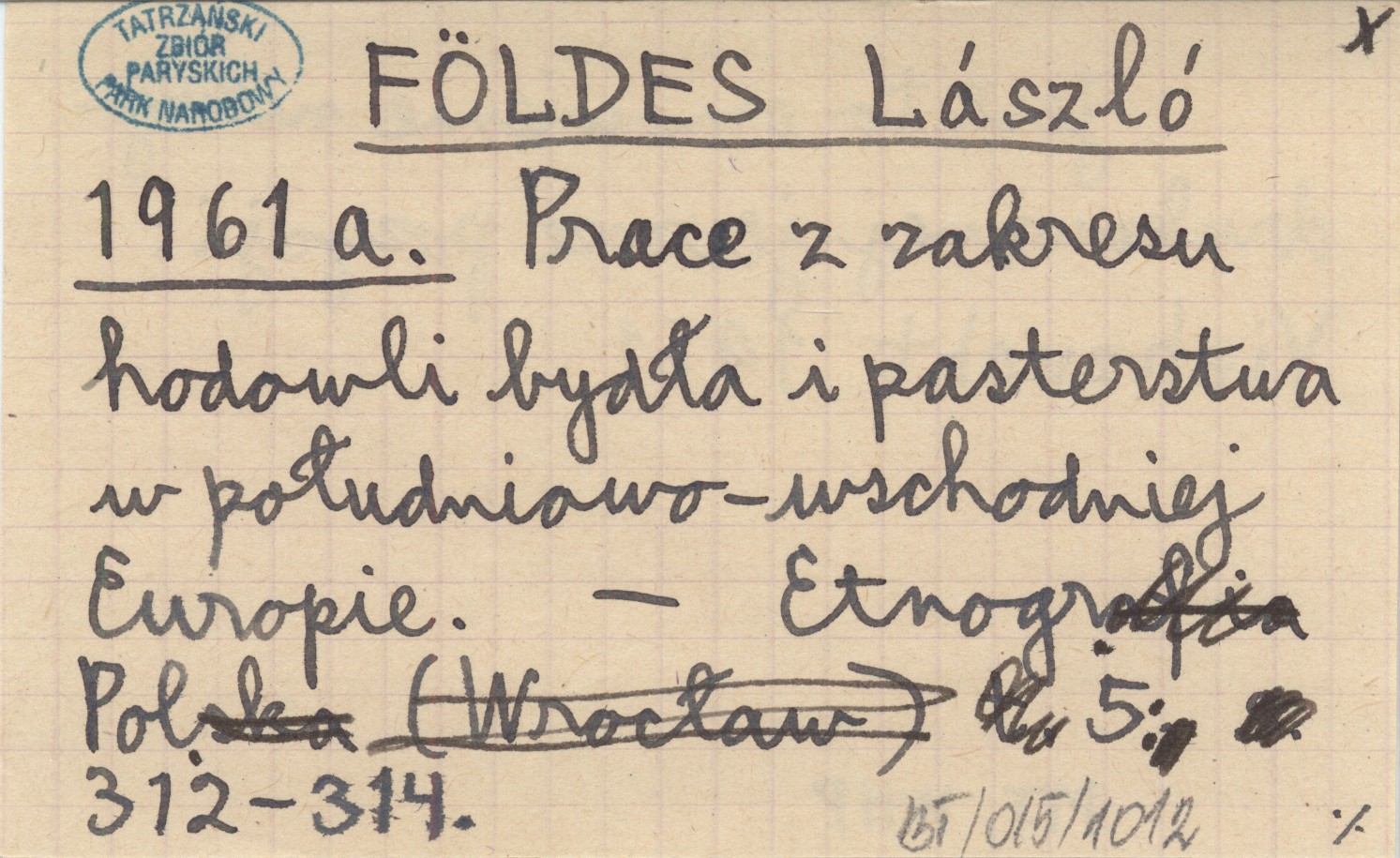 FÖLDES László 1961 a Prace z zakresu hodowli bydła i pasterstwa w południowo-wschodniej Europie.