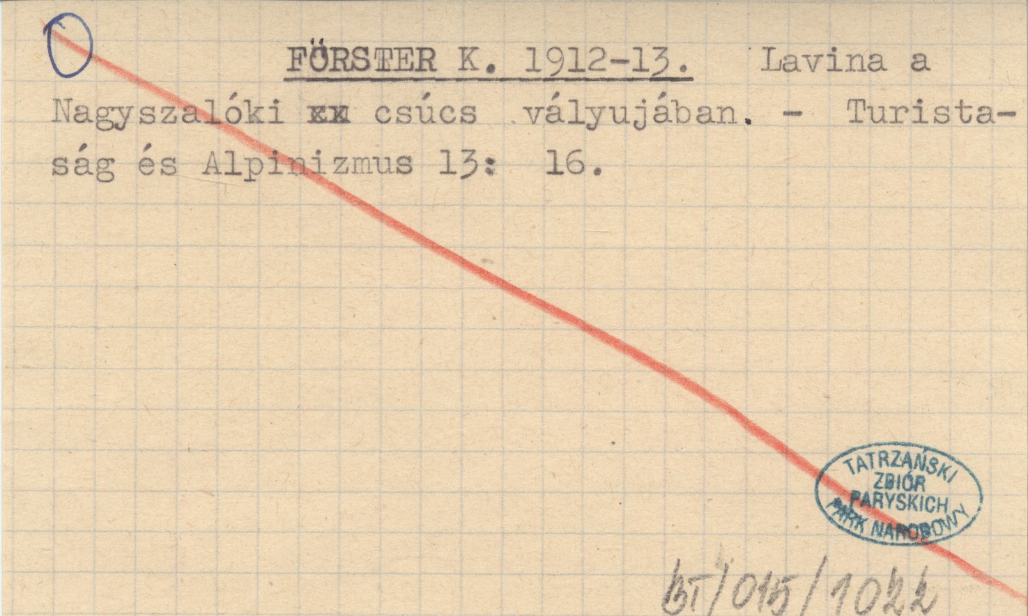 FÖRSTER K. 1912-13 Lavina a Nagyszalóki csúcs vályujában.
