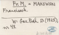 Fr. M. MAKOWSKI Franciszek Gazeta Podhalańska 7 (1919), nr 3. Nie dotyczy regionu.