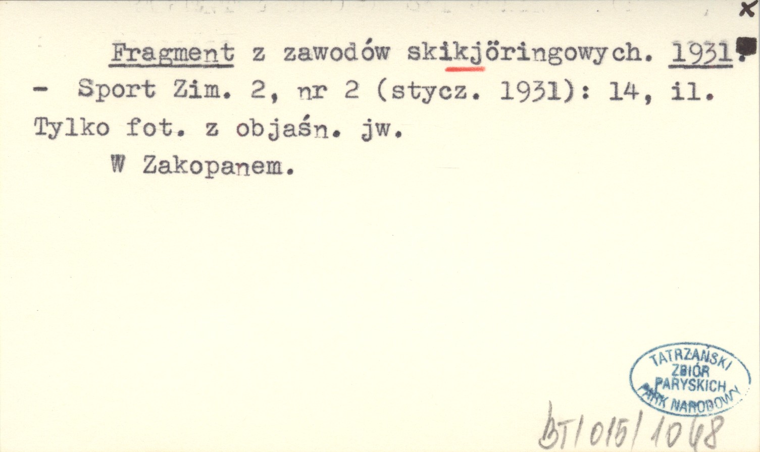 Sport Zimowy, 2, nr 2 (I 1931): 14, il. W Zakopanem. Tylko fot. z objaśn. jw.