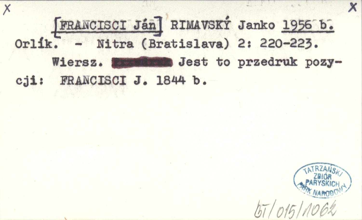 Nitra (Bratislava) , 2: 220-223. Wiersz. Jest to przedruk pozycji: FRANCISCI J. 1844 b