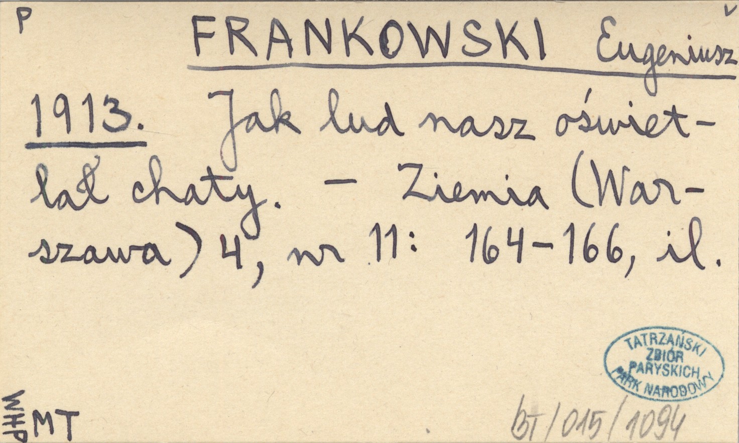 FRANKOWSKI Eugeniusz 1913 Jak lud nasz oświetlał chaty.