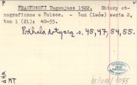 FRANKOWSKI Eugenjusz 1922 Zbiory etnograficzne w Polsce.