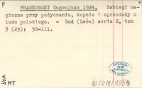 FRANKOWSKI Eugenjusz 1924 Zabiegi magiczne przy pożyczaniu, kupnie i sprzedaży u ludu polskiego.