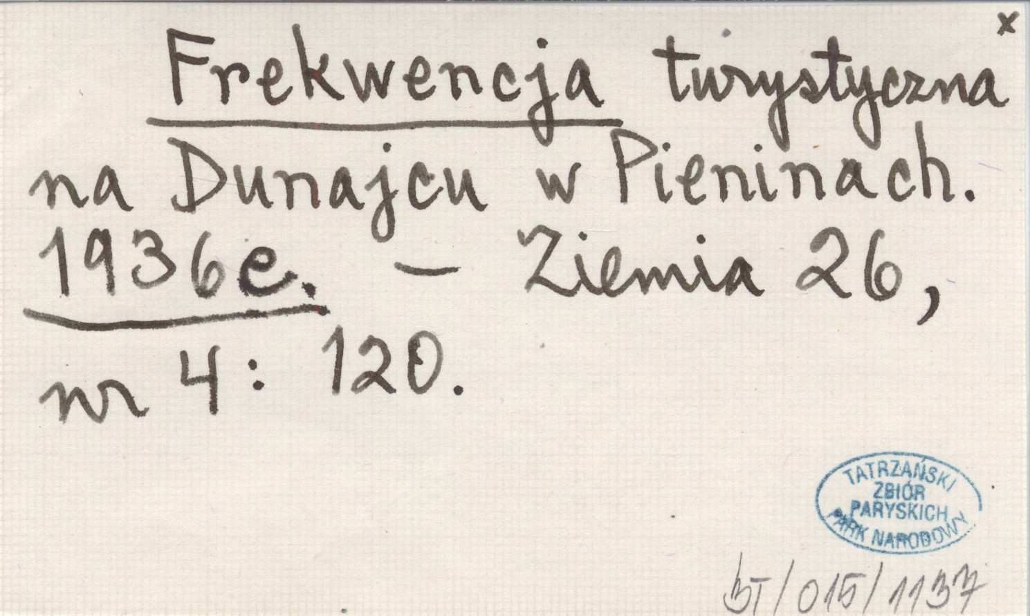 Frekwencja turystyczna na Dunajcu w Pieninach. 1936 e