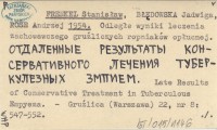 FRENKEL Stanisław BŁĘDOWSKA, Jadwiga. ; ROSE, Andrzej. ; 1954 Odległe wyniki leczenia zachowawczego gruźliczych ropniaków opłucnej. Otdalennye rezul'taty koncervativnogo lečenija tuberkuleznych zmpiem. Late Results of Conservative Treatment in Tuberculous Empyema.