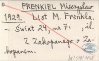 FRENKIEL Mieczysław 1929 List M. Frenkla.
