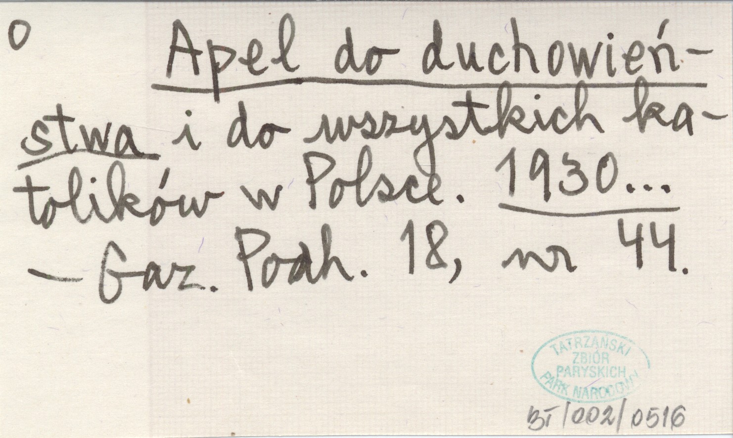 Apel do duchowieństwa i do wszystkich katolików w Polsce. 1930...