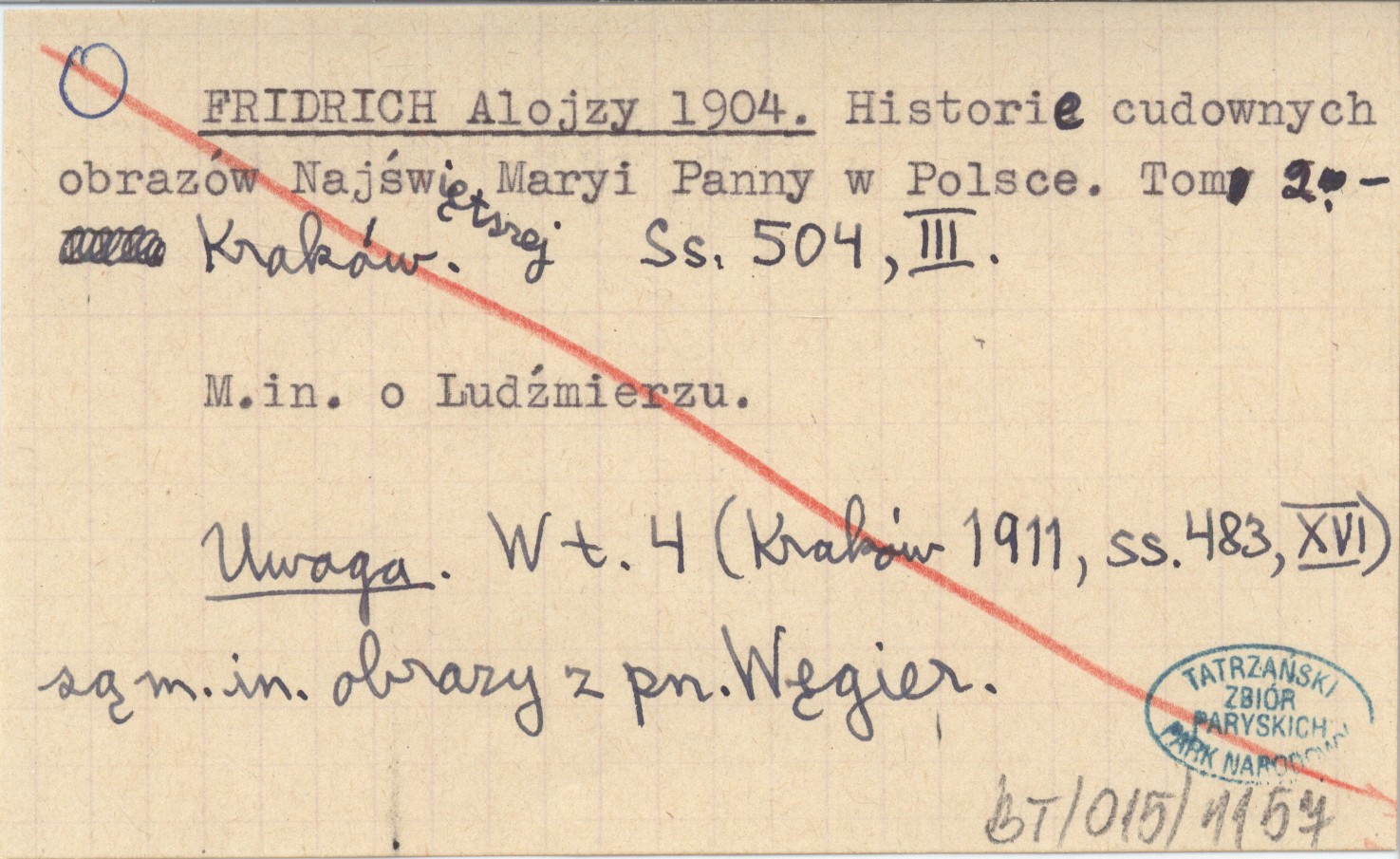 FRIDRICH Alojzy 1904 Historie cudownych obrazów Najświętszej Maryi Panny w Polsce.