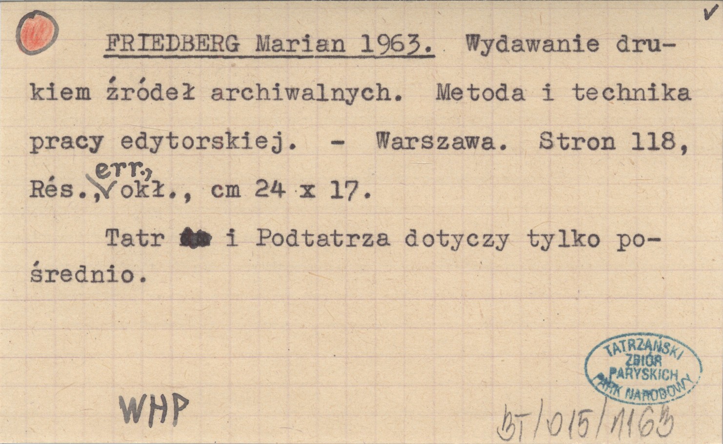 FRIEDBERG Marian 1963 Wydawanie drukiem źródeł archiwalnych. Metoda i technika pracy edytorskiej.