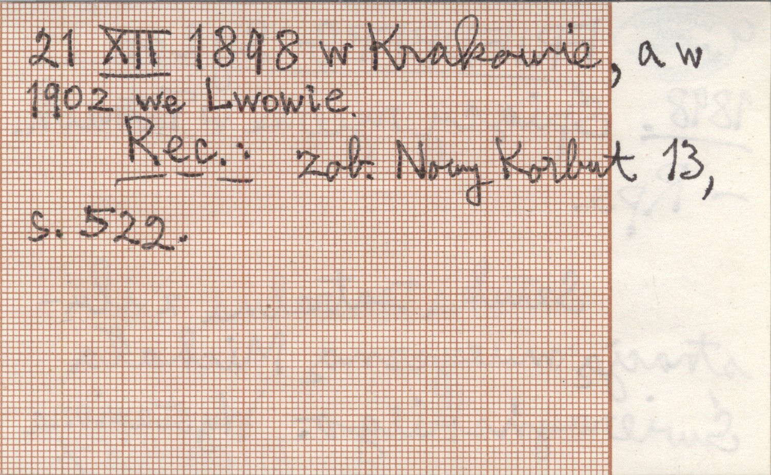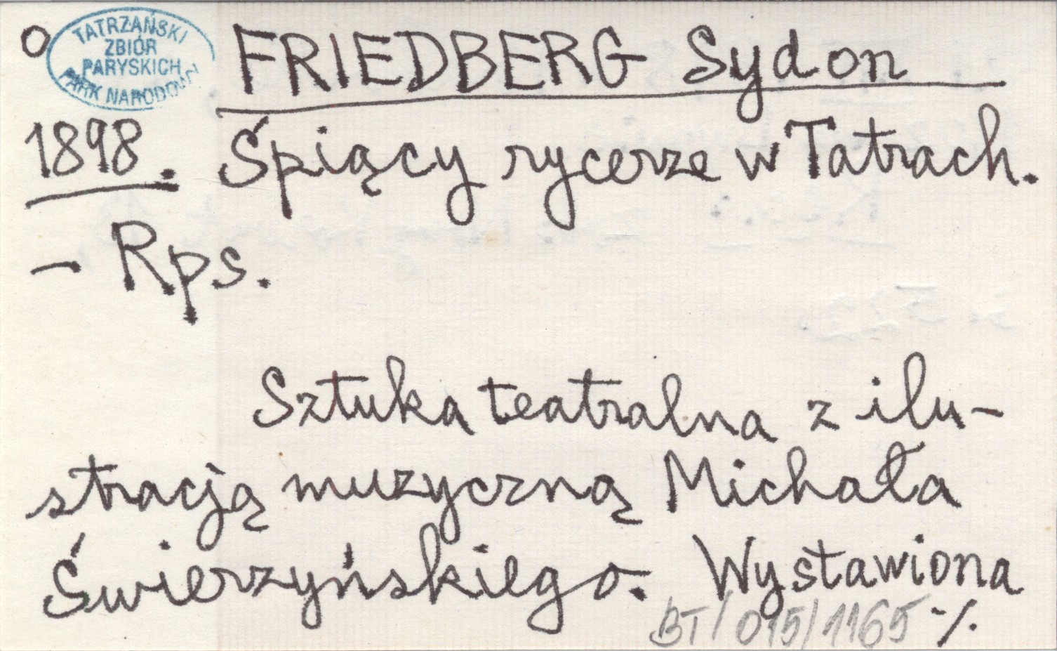 , Sztuka teatralna z ilustracją muzyczną Michała Świerzyńskiego. Wystawiona 21 XII 1898 w Krakowie, a w 1902 we Lwowie. Rękopis. REC: zob. Nowy Korbut 13, s. 522.
