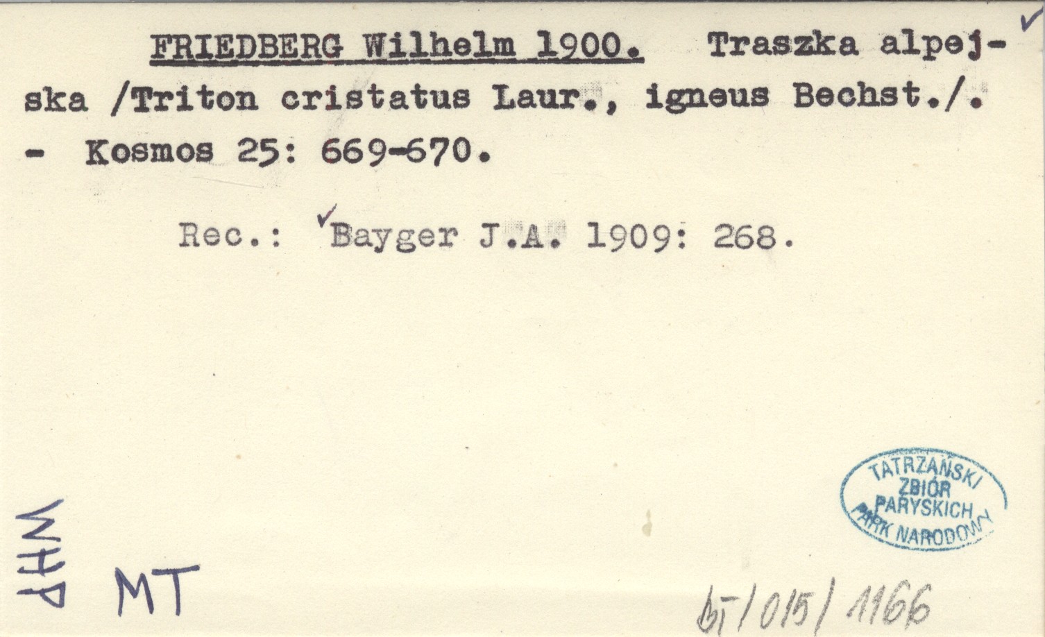 FRIEDBERG Wilhelm 1900 Traszka alpejska (Triton cristatus Laur., igneus Bechst.).