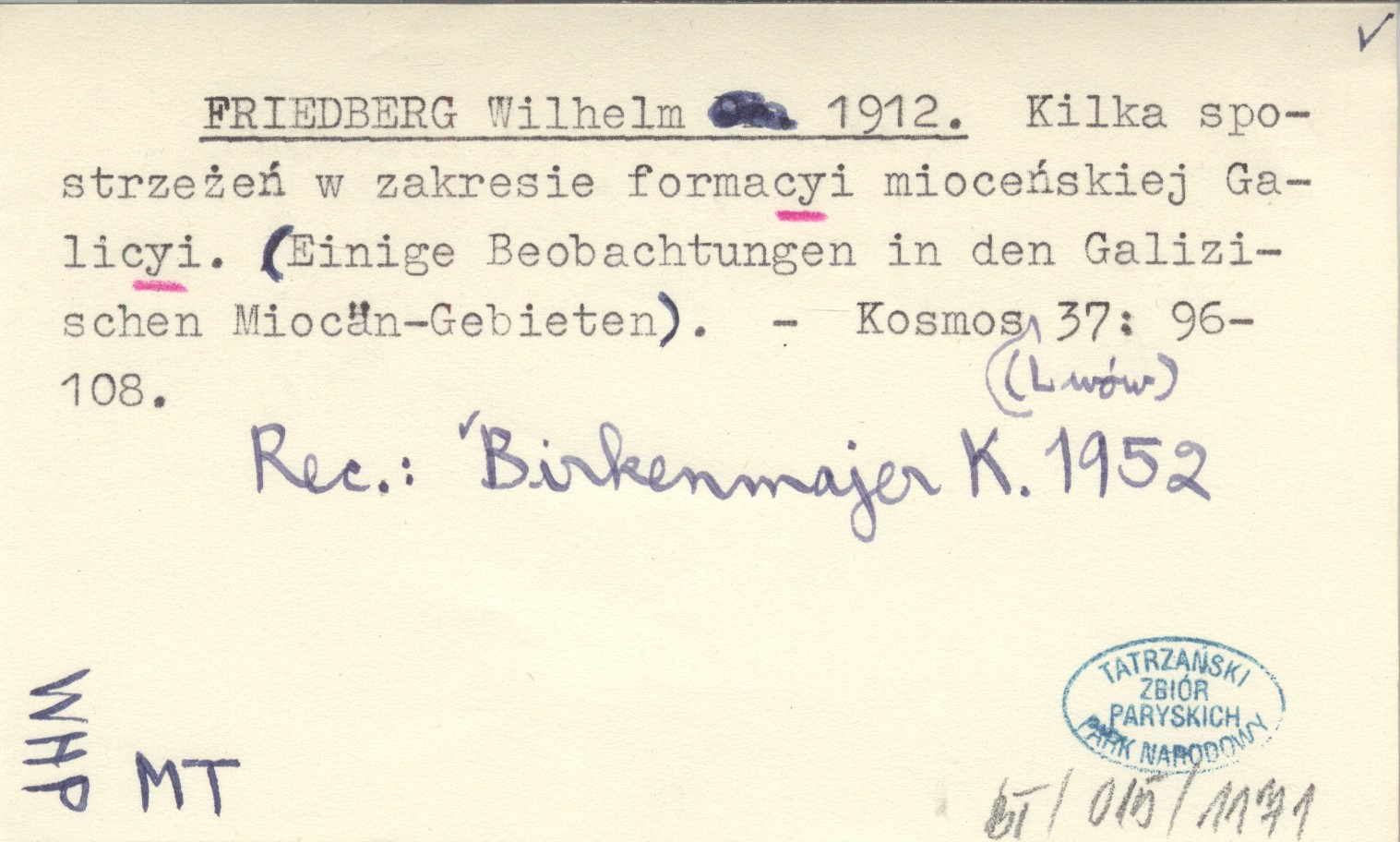 Kosmos (Lwów) , 37: 96-108. REC: BIRKENMAJER K. 1952