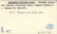 FRIEDBERG Wilhelm 1900 Traszka alpejska (Triton cristatus Laur., igneus Bechst.).