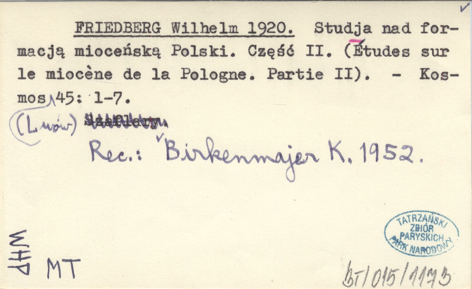 FRIEDBERG Wilhelm 1920 Studja nad formacją mioceńską Polski. Część II. (Études sur le miocéne de la Pologne. Partie II).