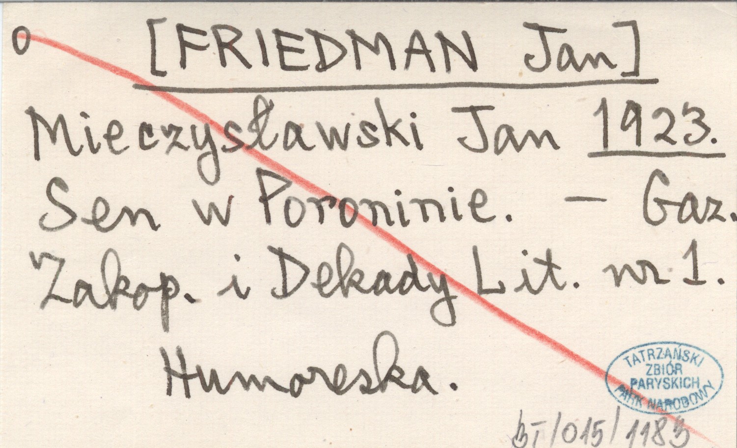 [FRIEDMAN Jan] MIECZYSŁAWSKI, Jan. ; 1923 Sen w Poroninie.