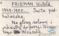 FRIEMAN Witold 1952 Taniec góralski. Na skrzypce lub altówkę z towarzyszeniem fortepianu. Oprac. Mieczysław Szatelski.