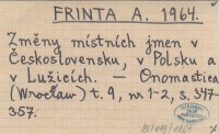 FRINTA A. 1964 Změny místních jmen v Československu, v Polsku a v Lužicích.