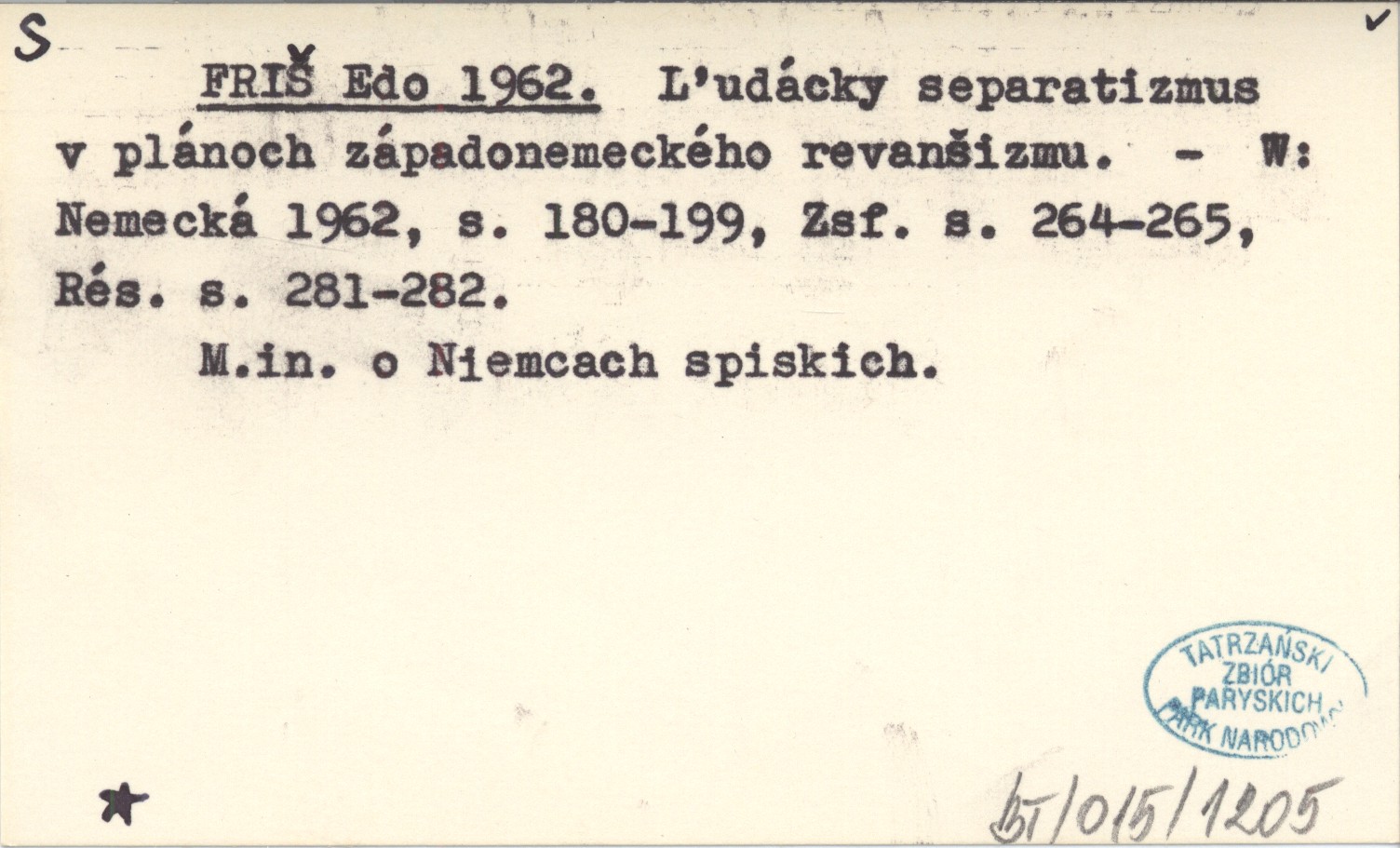 Nemecká. , S. 180-199, Zsf. s. 264-265, Rés. s. 281-282. M.in. o Niemcach spiskich.