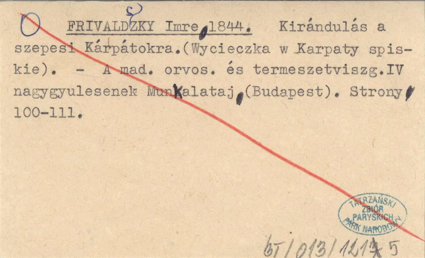 FRIVALDSZKY Imre 1844 Kirándulás a szepesi Kárpátokra természettudományi tekintetből. (Wycieczka w Karpaty spiskie.)