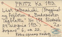 FRITZ Ks. 1913 List tatrzański. (Oryginalny fejleton z "Budapester Tagblattu" Nr. 199. Niedziela 24 sierpnia 1913.).