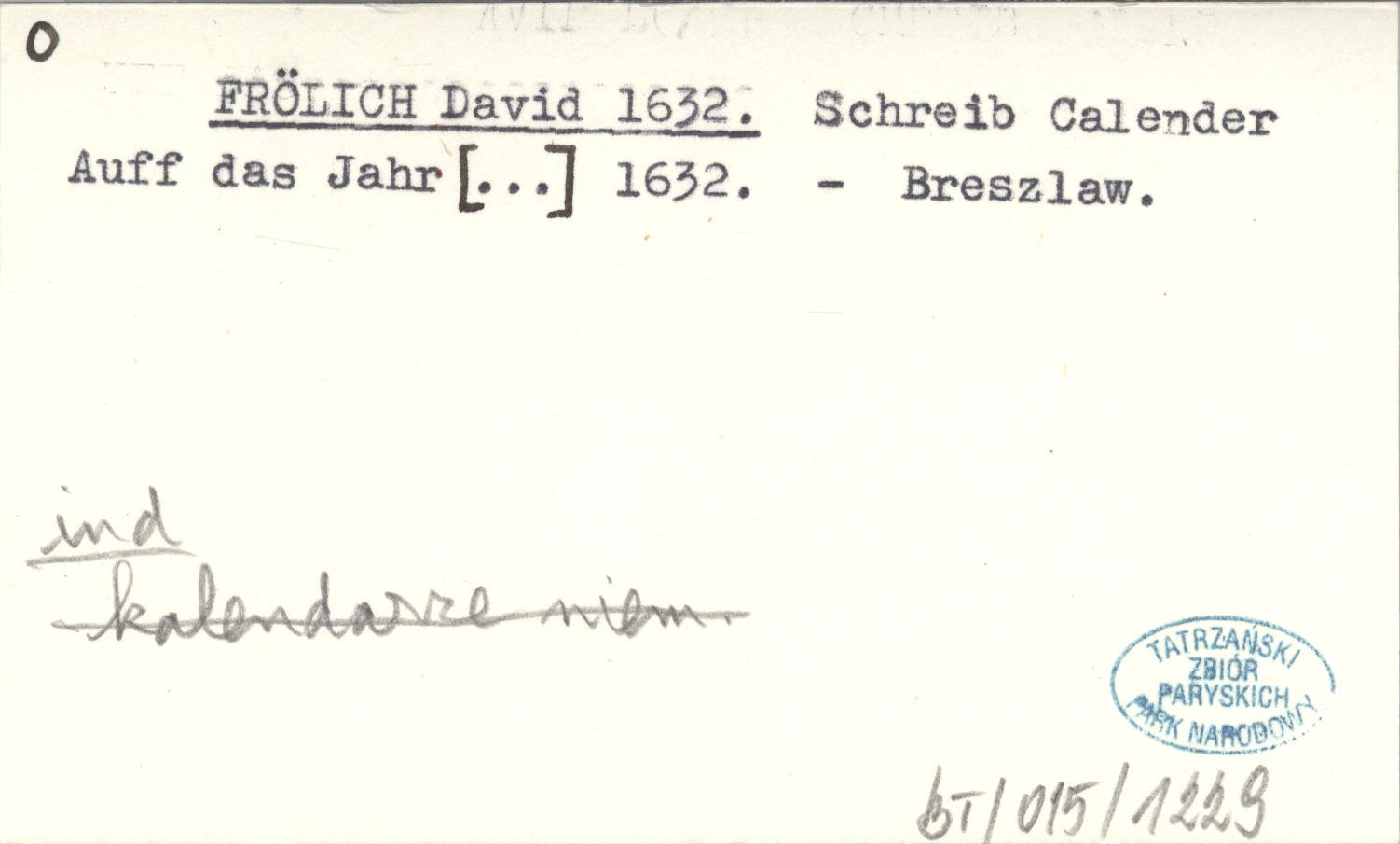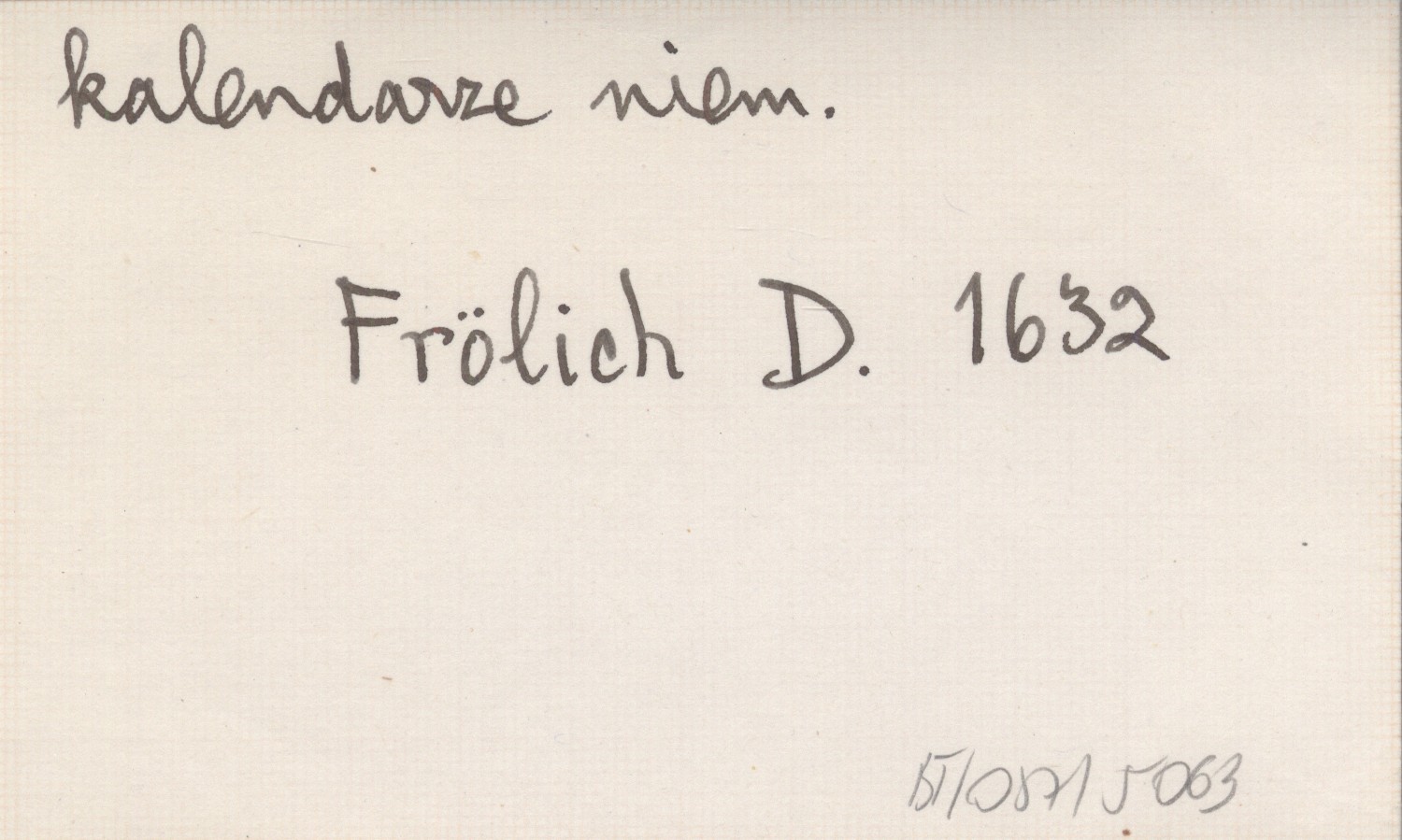 FRÖLICH David 1632 Schreib Calender Auff das Jahr [...] 1632.