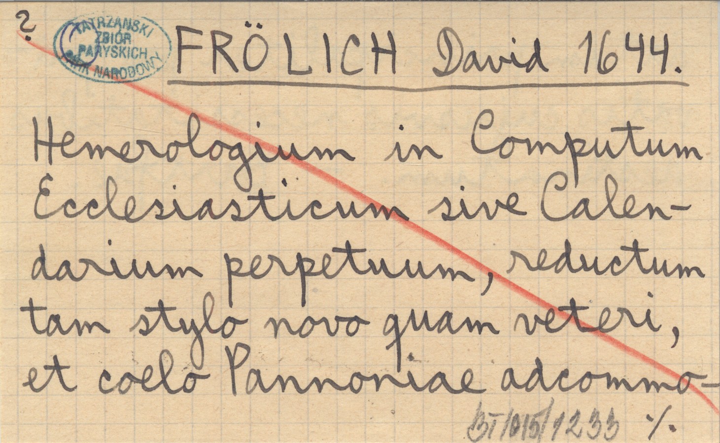 FRÖLICH David 1644 Hemerologium in Computum Ecclesiasticum sive Calendarium perpetuum, reductum tam stylo novo guam veteri, et coelo Pannoniae adcommodatum principaliter pro privatis cujusvis necessitatibus destinatum.