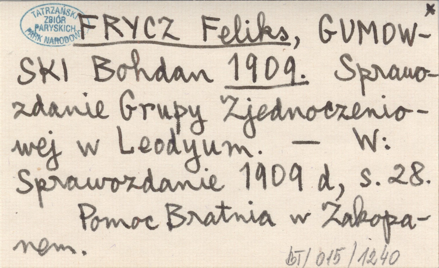 Sprawozdanie 1909 d , S. 28. Pomoc Bratnia w Zakopanem.
