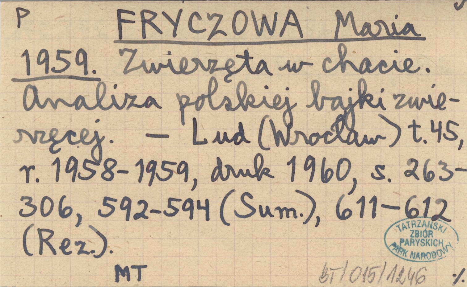 FRYCZOWA Maria 1959 Zwierzęta w chacie. Analiza polskiej bajki zwierzęcej.