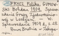 FRYCZ Feliks GUMOWSKI, Bohdan. ; 1909 Sprawozdanie Grupy Zjednoczeniowej w Leodyum.