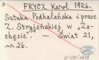 FRYCZ Karol 1926 Sztuka Podhalańska i prace Z. Stryjeńskiej w "Zachęcie".