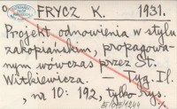 FRYCZ K. 1931 Projekt odnowienia w stylu zakopiańskim, propagowanym wówczas przez St. Witkiewicza.