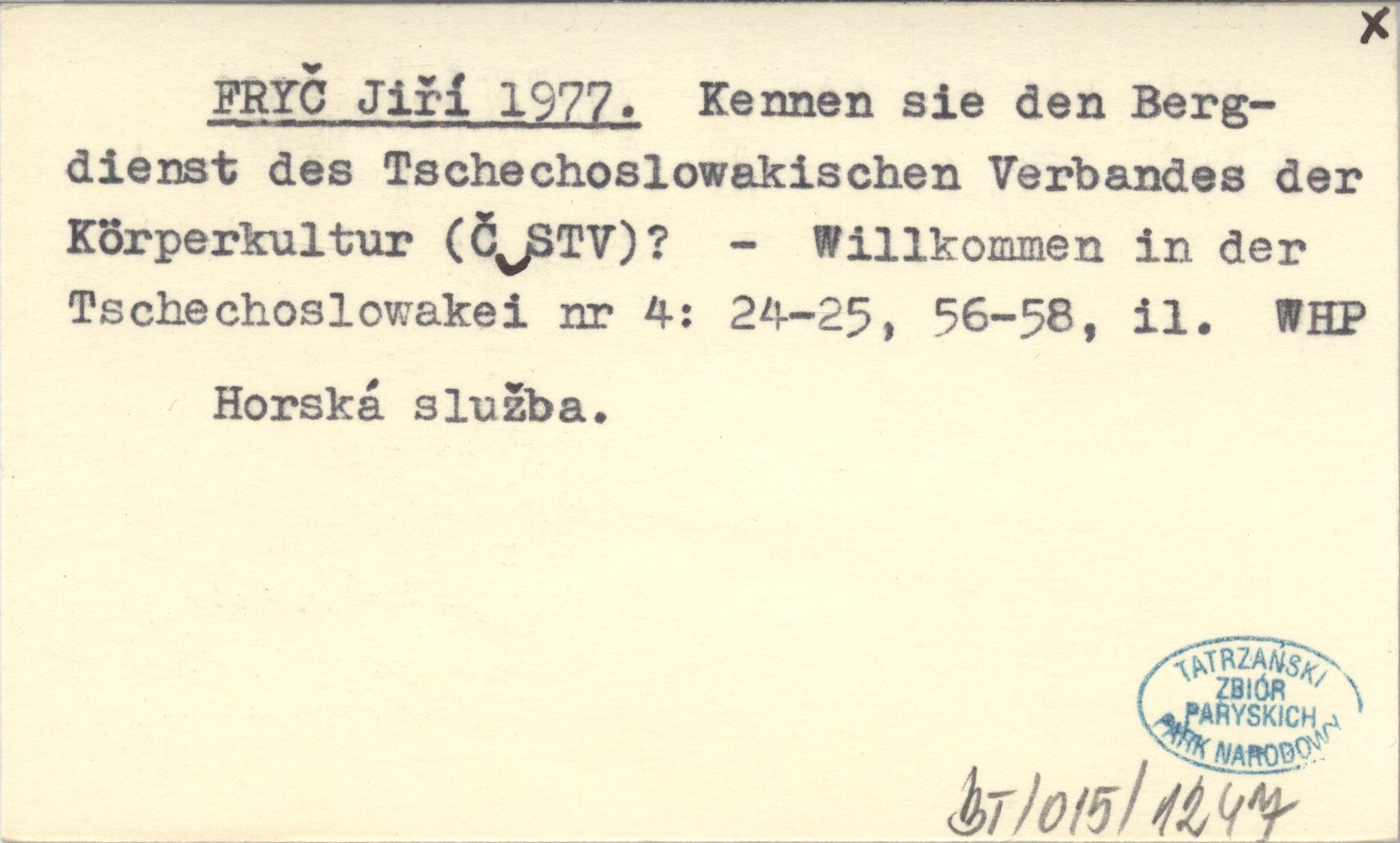FRYČ Jiří 1977 Kennen sie den Bergdienst des Tschechoslowakischen Verbandes der Körperkultur (ČSTV)?