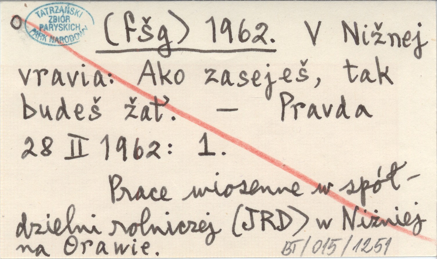 Pravda, 28 II 1962: 1. Prace wiosenne w spółdzielni rolniczej (JRD) w Niżniej na Orawie.