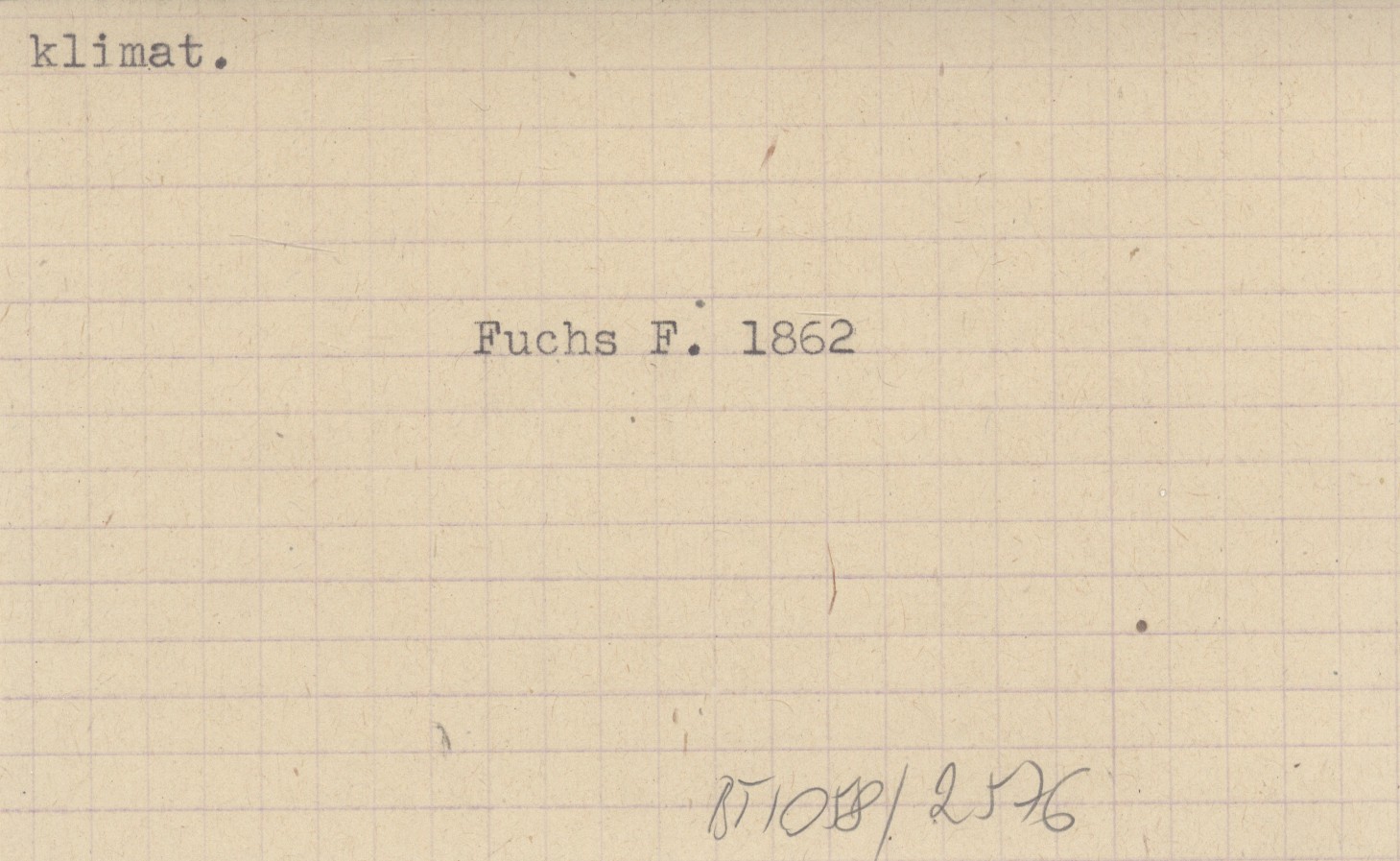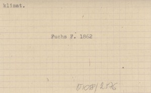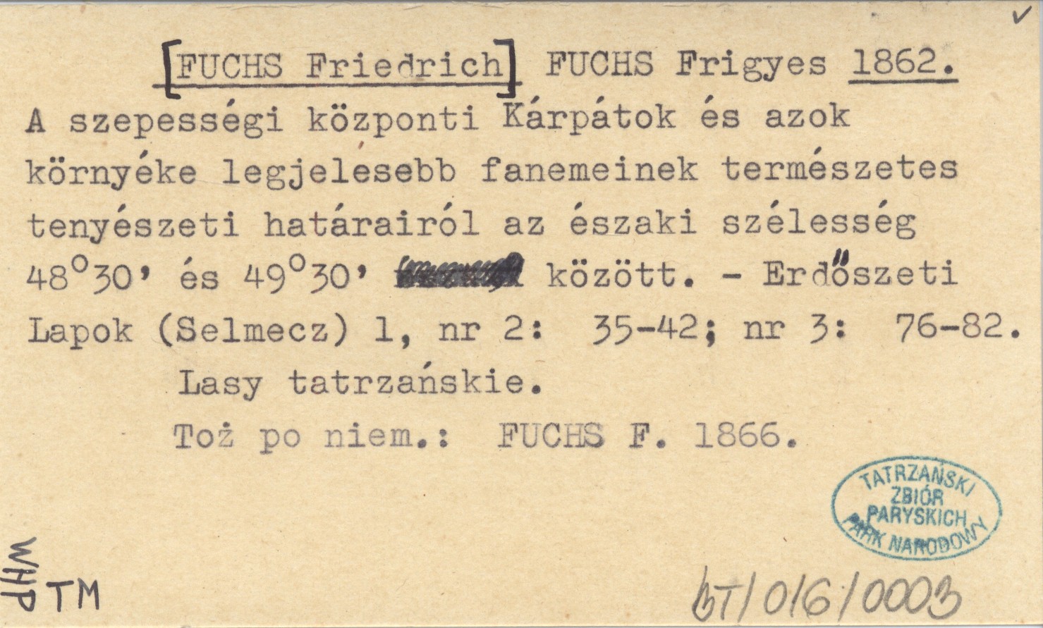 [FUCHS Friedrich] FUCHS, Frigyes. ; 1862 A szepességi központi Kárpátok és azok környéke legjelesebb fanemeinek természetes tenyészeti határairól az északi szélesség 48°30' és 49°30' között.