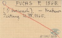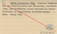 [FUCHS Friedrich] FUCHS, Frigyes. ; 1862 A szepességi központi Kárpátok és azok környéke legjelesebb fanemeinek természetes tenyészeti határairól az északi szélesség 48°30' és 49°30' között.